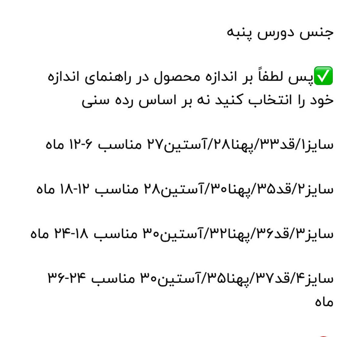 سایز: از ۶ماه تا ۳۶ ماه