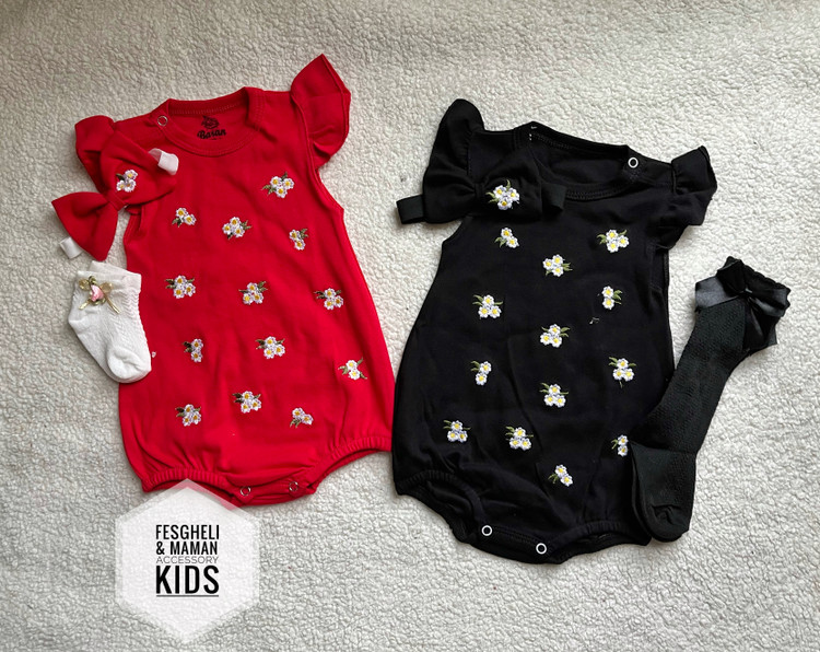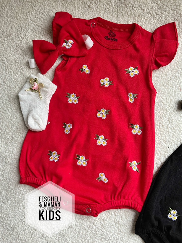 ست بادی آستین کوتاه گلدوزی دار و هدبند