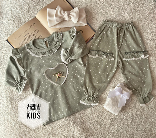 ست بادی آستین کوتاه گلدوزی دار و هدبند