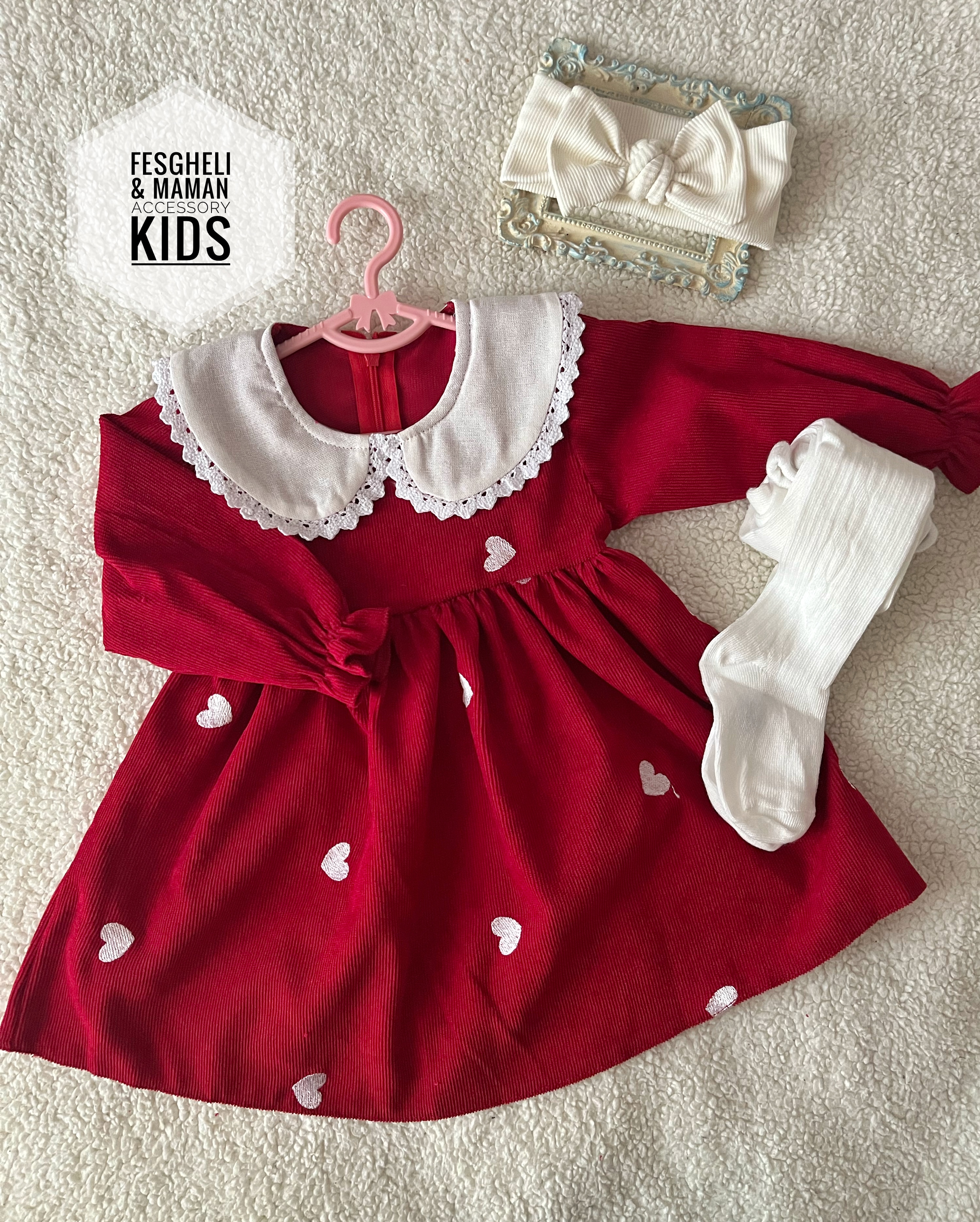 پیراهن مخمل کبریتی پرنسسی کودک مناسب ۶ ماه تا ۳ سال